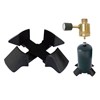 The stabilising base folds out and the hose adaptor converts a 1" - 20 UNEF outlet to a 3/8" BSP-LH outlet. The propane PROCAN1B canister is not included.