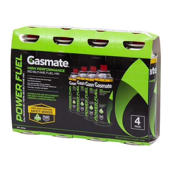 Gasmate Power Fuel Iso-Butane Cartridges make enjoying the outdoors simple and easy. Featuring Twin Safety Devices - Rim Vent Release and Triple Seamed Rim Technology.