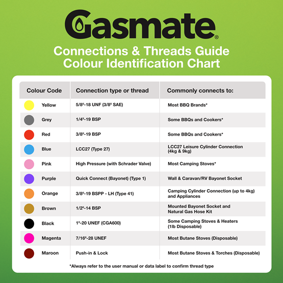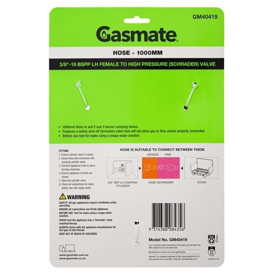 Gasmate is committed to enhancing your BBQing and camping experiences with added convenience and safety. We have a comprehensive range of gas fittings and accessories for your needs. The GM40419 1000mm Hose will suit 2 and 3 burner camping stoves.