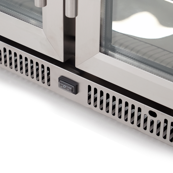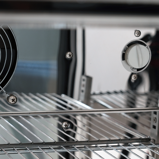 The Glass Door Bar Fridge should be protected from excessive heat sources and out of direct sunlight as this may affect the cooling performance.