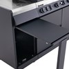The left side burner cabinet features a lift-up door that transforms into a handy shelf |