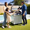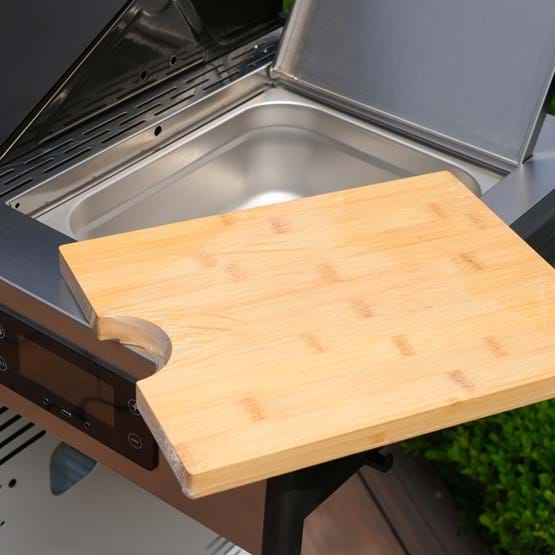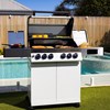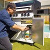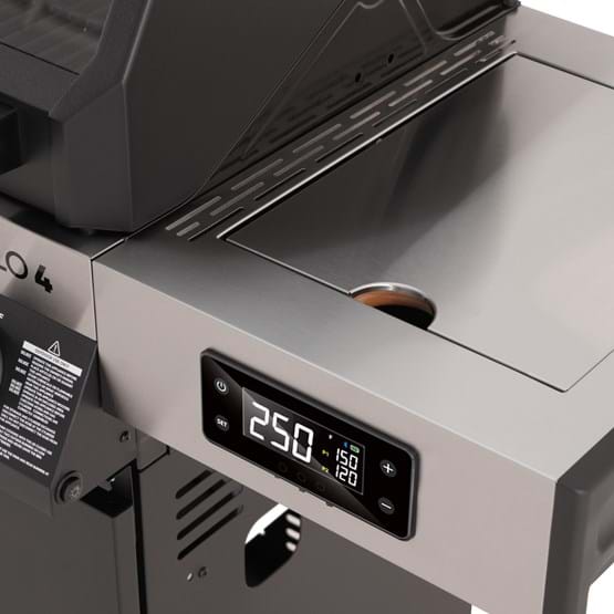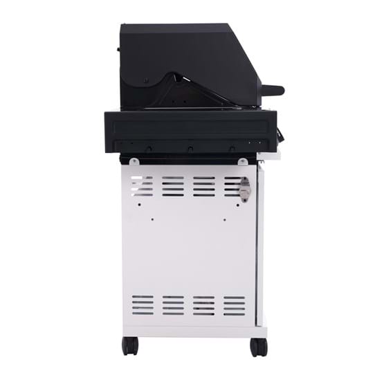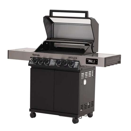 The Gasmate Apollo 4 Burner BBQ delivers smart design and serious performance. Featuring a powder-coated body, and hood with a large glass viewing window, it’s as stylish as it is functional. Includes stainless steel fascia and side shelves, battery-powered digital control, two plug-in temperature probe all easily monitored via Bluetooth/WiFi smartphone app. A built-in ice or storage tub with lid and bamboo cutting board adds convenience, while LED-lit knobs indicate burner status at a glance. With 67.6MJ/h total output across four main burners, a rear burner with heat shield, and a side burner, this BBQ is built for precision and power. Available in Black or White.