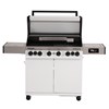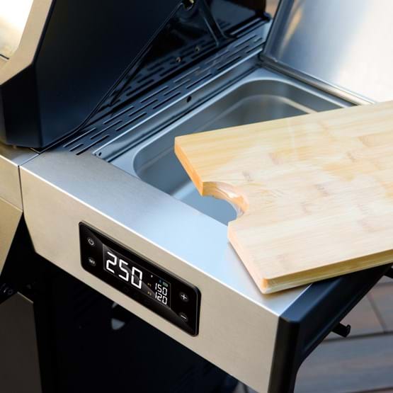 The Gasmate Apollo 6 Burner BBQ, available in black or white, delivers powerful performance and modern style. Featuring a powder coated body, glass viewing window, stainless steel fascia and shelves, and cast iron cooking plates, it’s built for serious outdoor cooking. Enjoy precise control with a battery-powered digital system, two plug-in temperature probes, and Bluetooth/WiFi app connectivity. With a total output of 90.6MJ/h, an integrated ice or storage tub with bamboo board, and LED-lit knobs, the Apollo is the ultimate BBQ for entertaining.