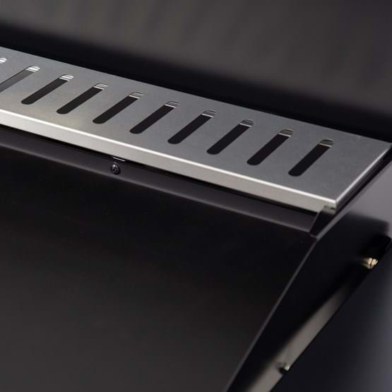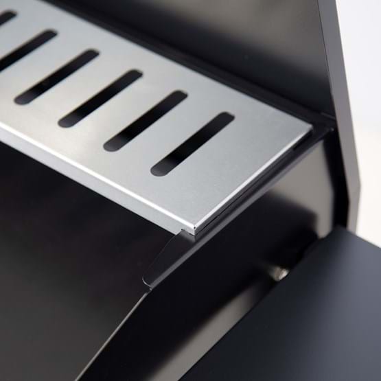 It features a new black powder coated front fascia and matching storage rack and black knobs.