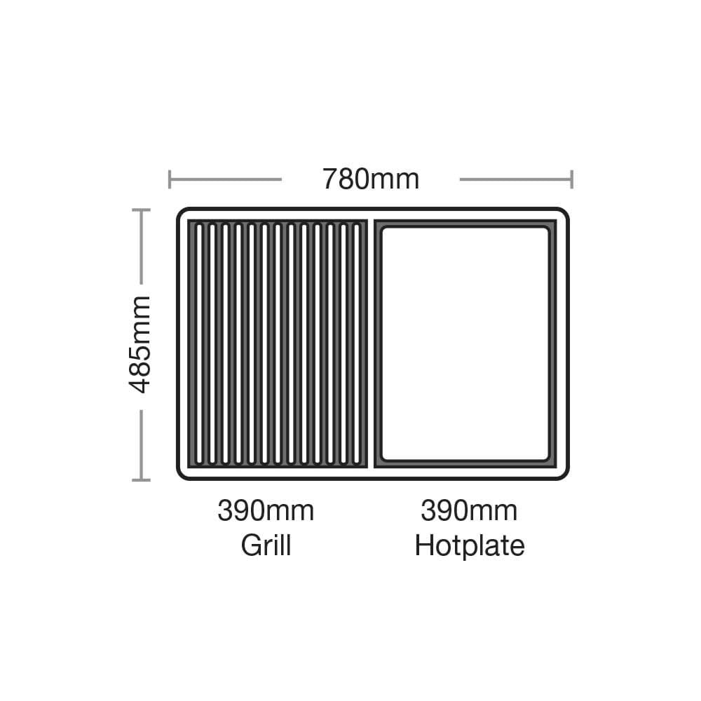 | Cooking surface configuration | 390 x 485 hotplate and 390 x 485 grill |