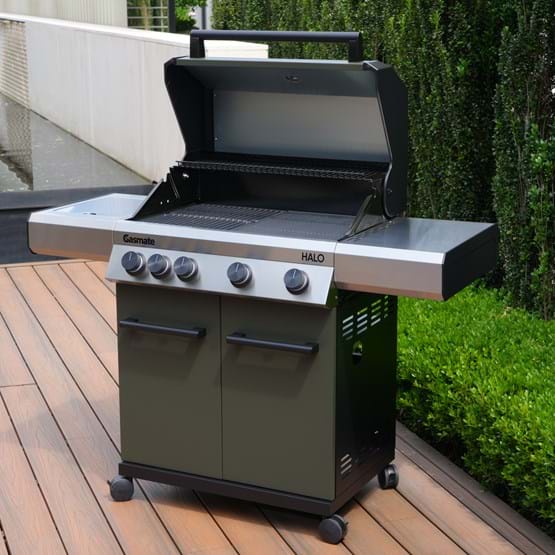 Fire up your outdoor entertaining with the new Gasmate Halo 4 Burner BBQ - where rugged performance meets sleek design. Featuring a stylish olive green powder coated body with contrasting black hood ends, this BBQ is built to impress and engineered to perform. With four powerful stainless steel burners delivering 11.5MJ/h each, plus a convenient side burner at 10.8MJ/h, you’ll have a total of 56.8MJ/h at your command. The stainless steel fascia and side shelves offer durability and modern appeal, while the rotary piezo ignition ensures easy starts every time. Cook up a feast with the spacious cooking area, cast iron grill and hot plates, and a stainless steel warming rack to keep everything perfectly timed. Tough, stylish, and built for Aussie backyards — the Halo 4 Burner is your new BBQ hero.