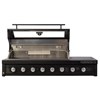 Discover the new Gasmate Platinum IV with new black powder coat stainless steel finish and square edged hood handle design. With its built-in design and range of features, the Gasmate Platinum IV 6 Burner Built-In BBQ can serve as the centrepiece of your outdoor kitchen, providing you with a versatile and enjoyable cooking experience. It’s packed with features including a double skinned stainless steel hood, electronic ignition and satin enamel coated cast iron hotplate and stainless steel grills and flame tamers.