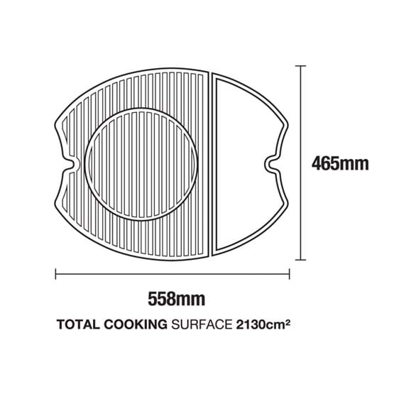Generous satin enamel cast iron grill & hotplate cooking area of 2130cm² |