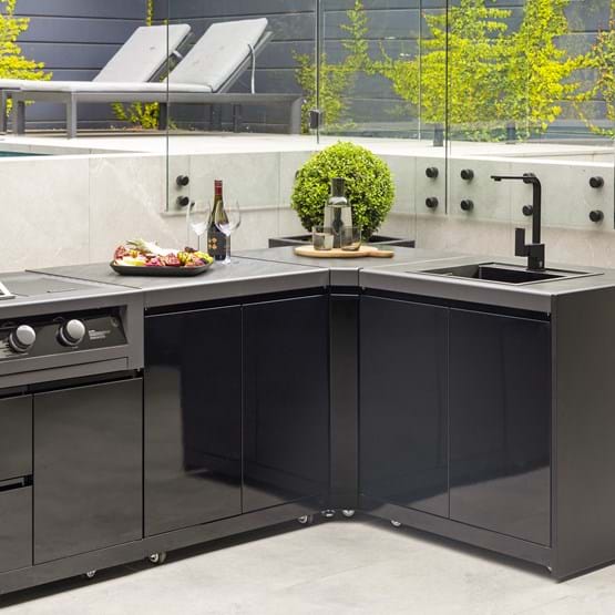 Introducing the Gasmate Galaxy Gen2 Corner Module, now enhanced with sleek, darker accents and new durable sintered stone benchtop. The corner module allows you to create a more custom look with an "L" shape design - either left or right hand side.