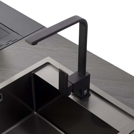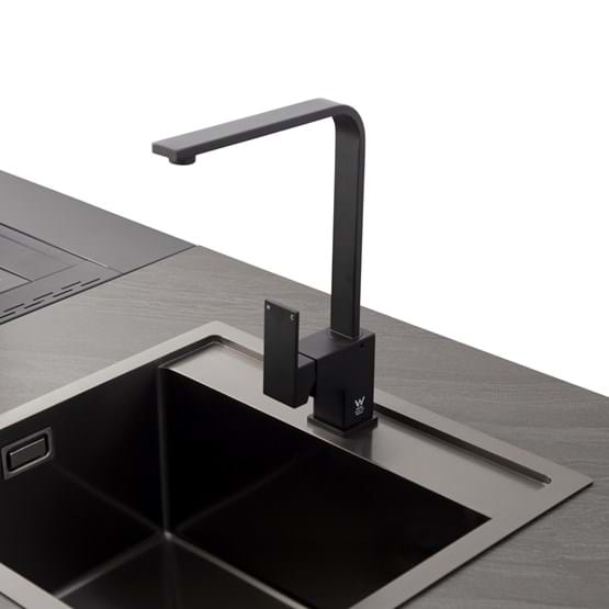 Dark stainless steel sink with WELS approved hot and cold tap  |