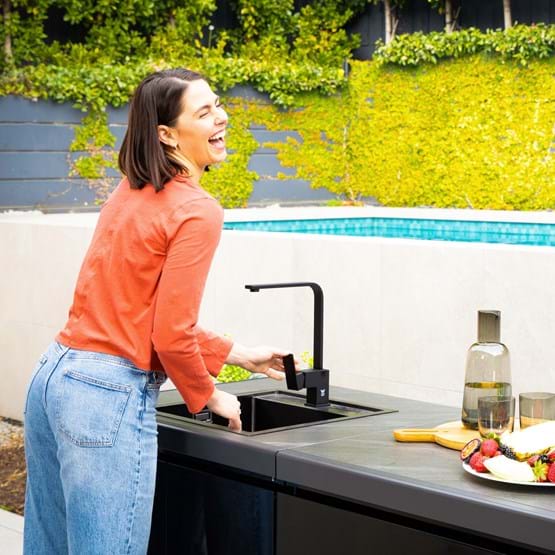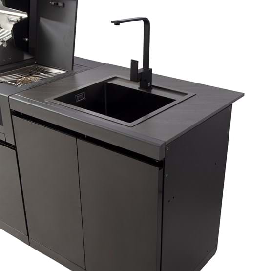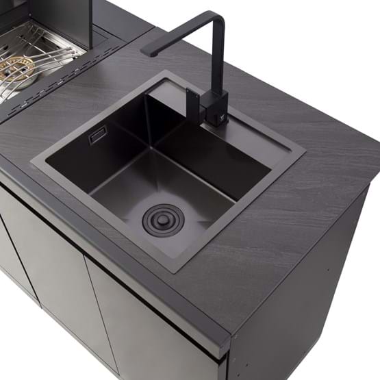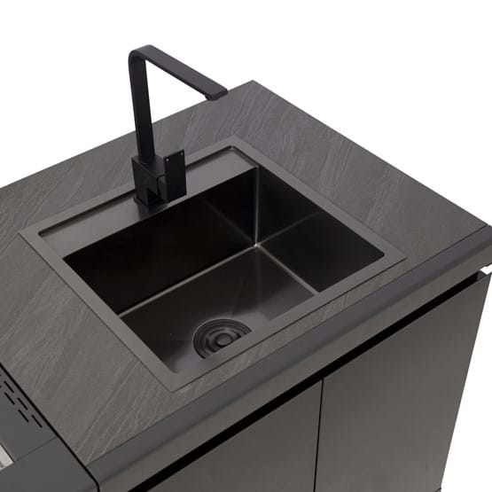 Introducing the Gasmate Galaxy Gen2 Sink, Bin & Storage Module, now enhanced with sleek, darker accents, new durable sintered stone benchtop and integrated sink & tap. It can be used as a standalone unit or combined with other Galaxy Gen2 modules and BBQ to create a stunning outdoor kitchen setup.