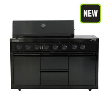 Introducing the refreshed Gasmate Nova MK2 range. We've added flame failure safety technology, which automatically cuts off the gas if the flame goes out, offering added peace of mind. Additional new features include upgraded sintered stone tops, new sink module with integrated chopping board and rotisserie kit & charcoal tray now included with all BBQ modules.
