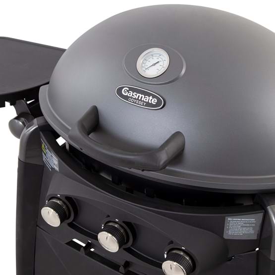 The Gasmate Odyssey 3 Burner Trolley BBQ (Matt Grey) is large enough to feed a hungry family and versatile enough to whip up a gourmet meal by the flame master in your home. The Odyssey 3B delivers the ultimate cooking experience, and with its integrated trolley you add a touch of style to any balcony or courtyard.