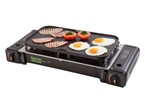 Enjoy the great taste of food cooked on Gasmate's non-stick Deluxe Double Grill Plate as you easily convert your camping stove into a BBQ in seconds with one side flat for frying and a ridge side for grilling. Cooking sunny side-up eggs, bacon and mushrooms for your big breakfast; and cooking steaks, fish and other BBQ meats for dinner, has never been easier with the Gasmate Deluxe Double Grill Plate.