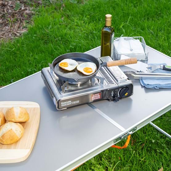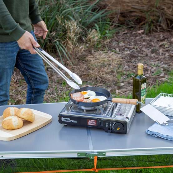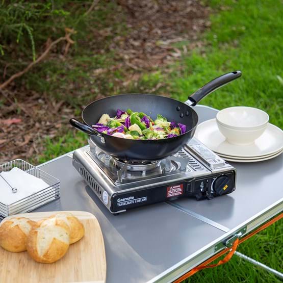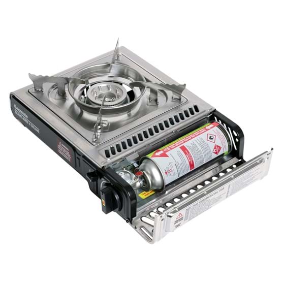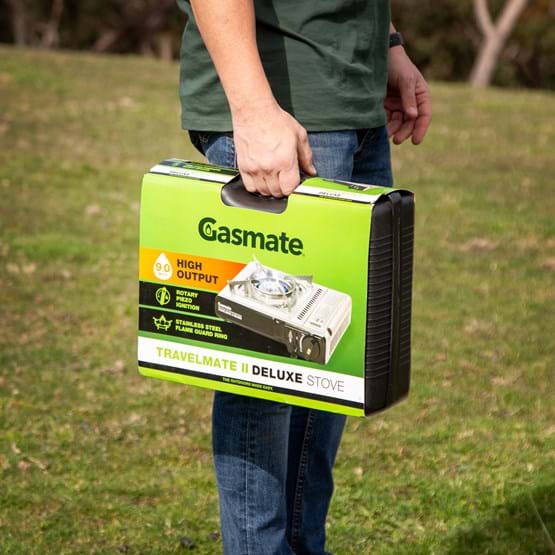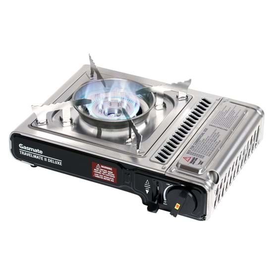 The Gasmate Travelmate II Deluxe Stove is a highly efficient outdoor butane gas cooking stove. With twin over-pressure sensing devices - enhanced safety devices which sense if pressure becomes too high. If over-pressure occurs the cartridge is ejected or gas supply is shut off to the burner.
