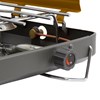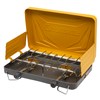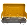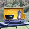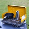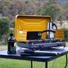 Constructed with a powder coated body, removable heavy duty chrome-plated cooking trivets, wind-shields and fine burner adjustment controls, the Gasmate 2 burner camping stove is your easy to use, easy to clean high output 2 burner portable camping stove. It folds down to briefcase size and comes complete with a hose to suit 3/8" BSP-LH cylinders.