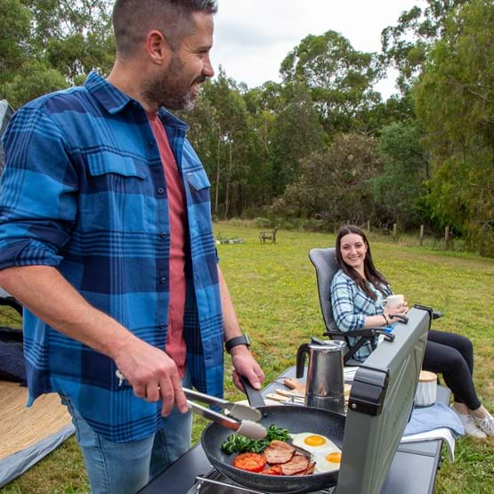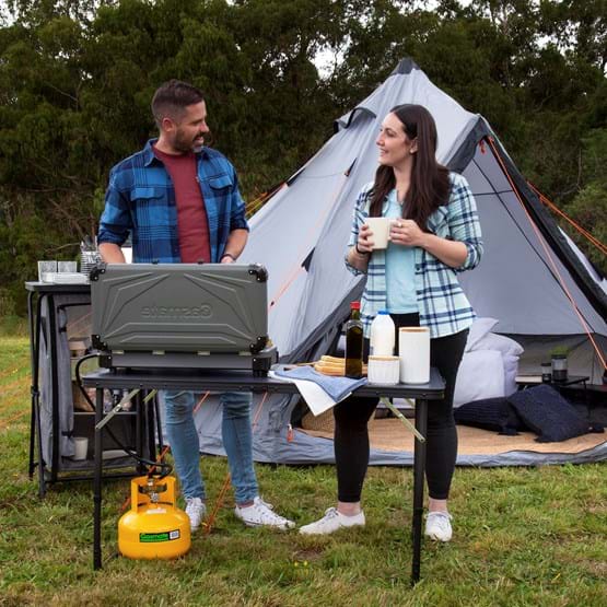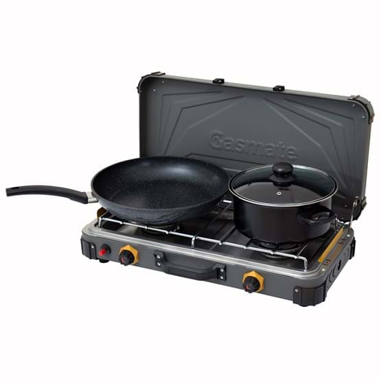 Cook in the great outdoors with the Gasmate Turbo 2 Burner Stove