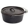 The Charmate Cast Iron Camp Oven Kit includes 4.5 Qrt round camp oven, lid lifter, trivet, gloves and carry bag.