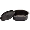 The Charmate Oval Cast Iron Camp Oven is pre-seasoned and ready for use! Its concave lid retains coals for superior heat transfer. The thick walls and base guarantee consistent heat and the wire handles are cool to touch.
