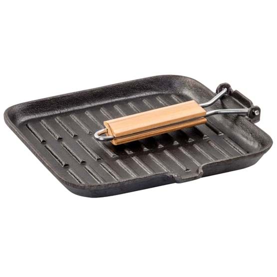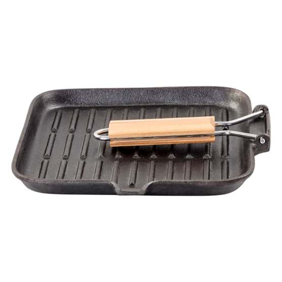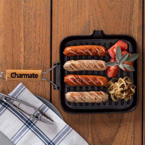 The Charmate Cast Iron Frying Pan is pre-seasoned and ready for use! It has a convenient pouring lip and consistently holds heat with its thick base. Complete with a folding wooden handle for neat and tidy storage.