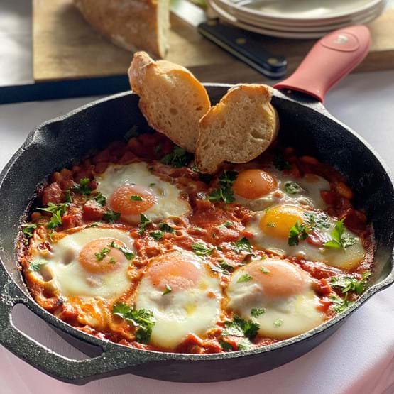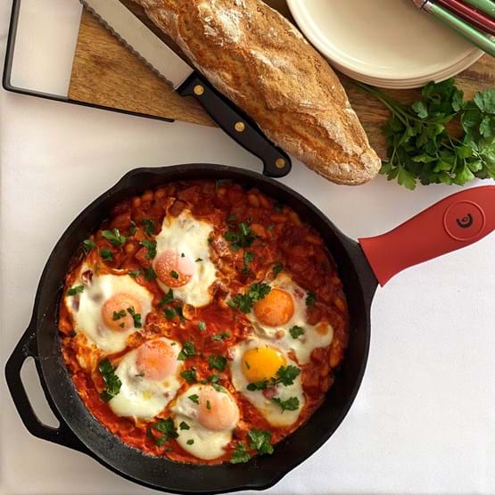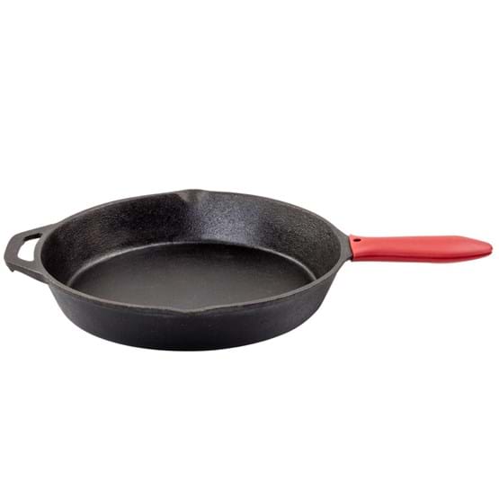 The Charmate Round Cast Iron Skillet is pre-seasoned and ready for use! It has a convenient pouring lip and consistently holds heat with its thick base. Complete with a helper handle to lift skillet with two hands.