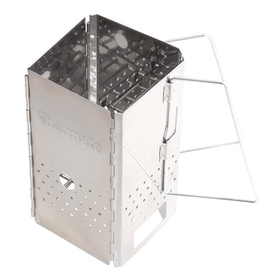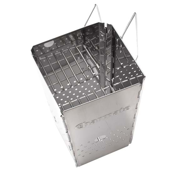 The Charmate Collapsible Charcoal Starter is constructed from 430 Stainless Steel which is durable, lightweight and long lasting. Its compact design retains coals for superior heat transfer and is collapsible - for easy storage when not in use, packing into its handy storage bag.