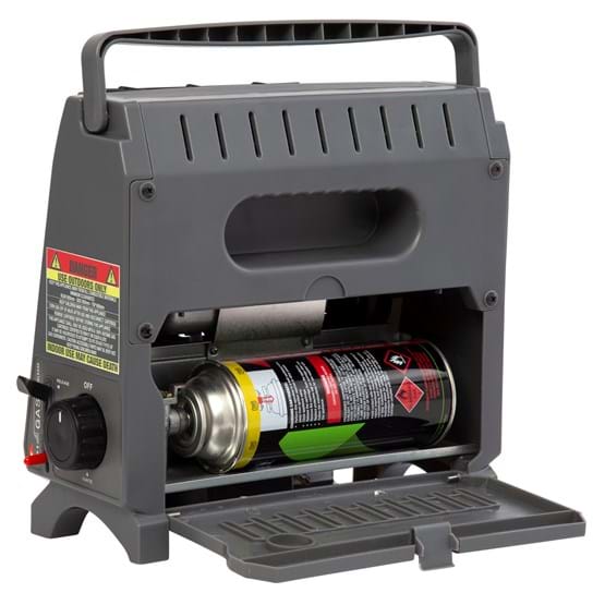 The Deluxe Butane Heater by Gasmate features an easy to use electronic ignition and gives you a high heat output of 6,800 BTU. It comes fully assembled in the box, all you need to do is add 1 AA battery and connect a Gasmate bayonet butane cartridge.
