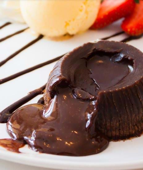 Pour your mixture into a muffin tray lined with paper cups. Place the tray into the centre of your BBQ. Bake for 9 minutes and be sure to serve runny. If it looks undercooked, it’s probably ready. The side should hold up, but the middle is as the name suggests – lava.